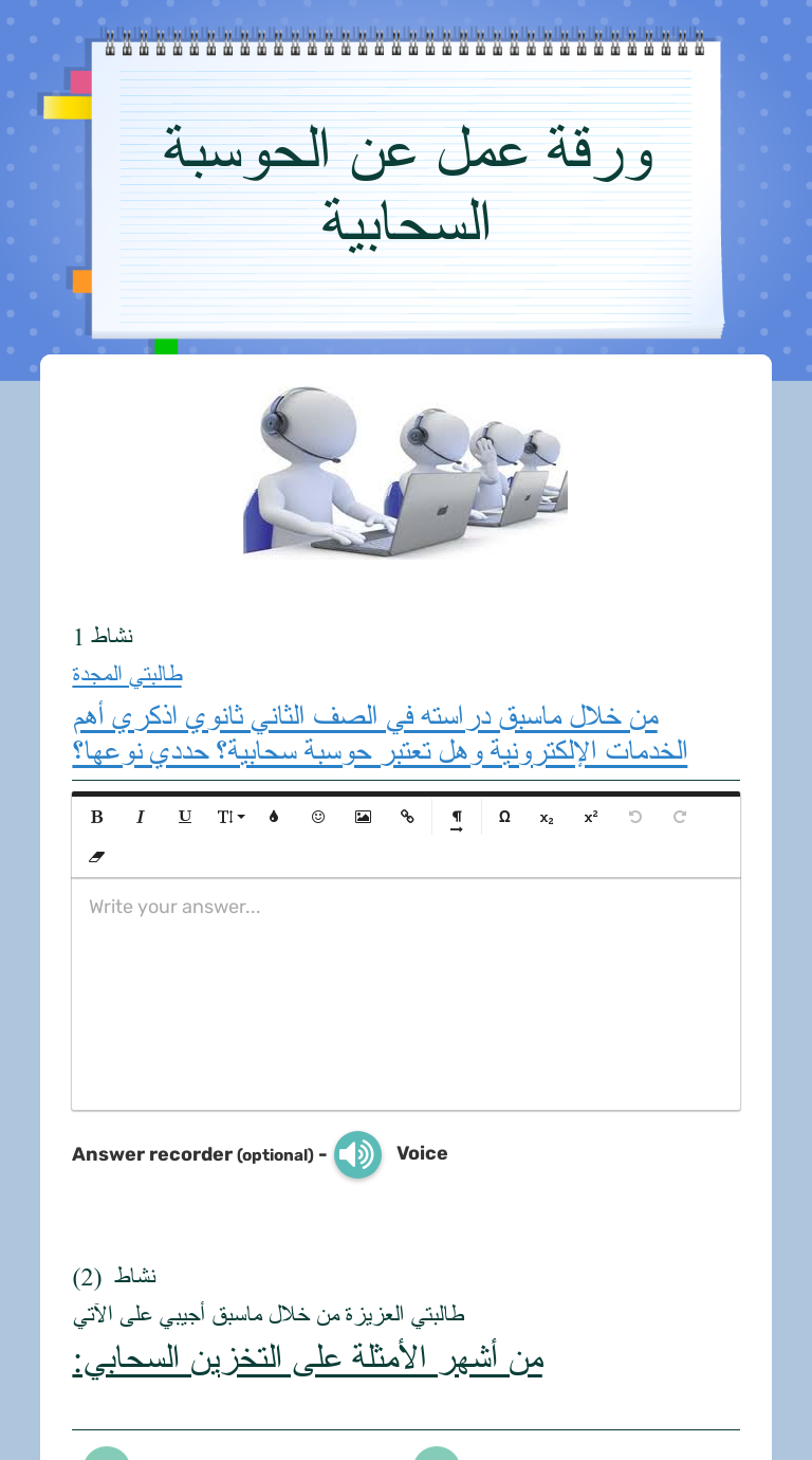 ورقة عمل عن الحوسبة السحابية Interactive Worksheet By حنان السواط Wizer Me